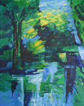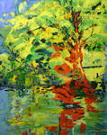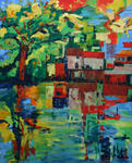 2011De schilderij geeft een impressionistisch beeld van het riviertje De Geul bij Valkenburg- Limburg